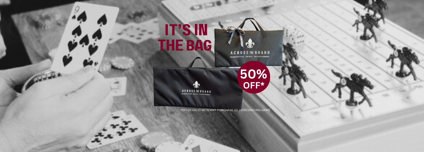 Discover games the whole family will love with Across The Board. Known for our popular horseracing game, we also offer a variety of other engaging options, including timeless classics like chess and Chinese checkers. Each game is meticulously handmade in America, ensuring top-notch quality and a unique touch in every piece. Enjoy quality time together with our diverse collection, designed to bring joy and excitement to every family gathering.