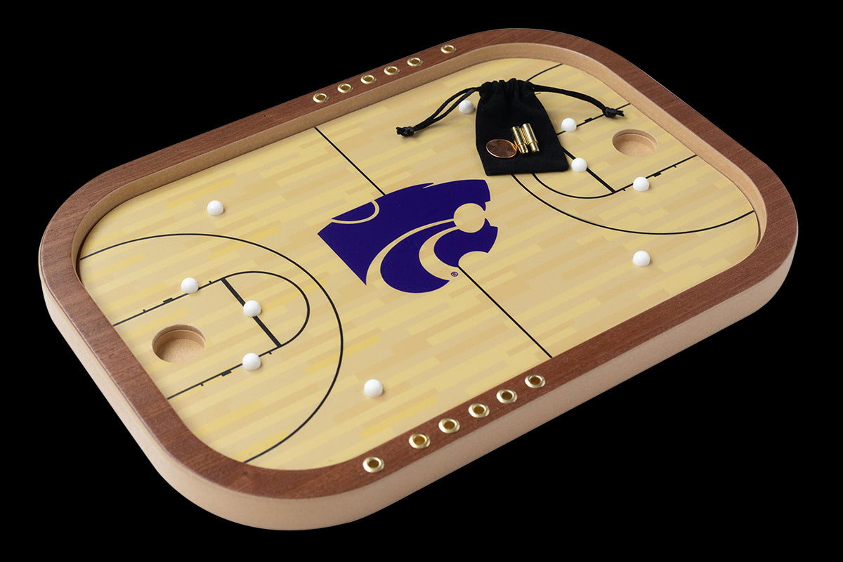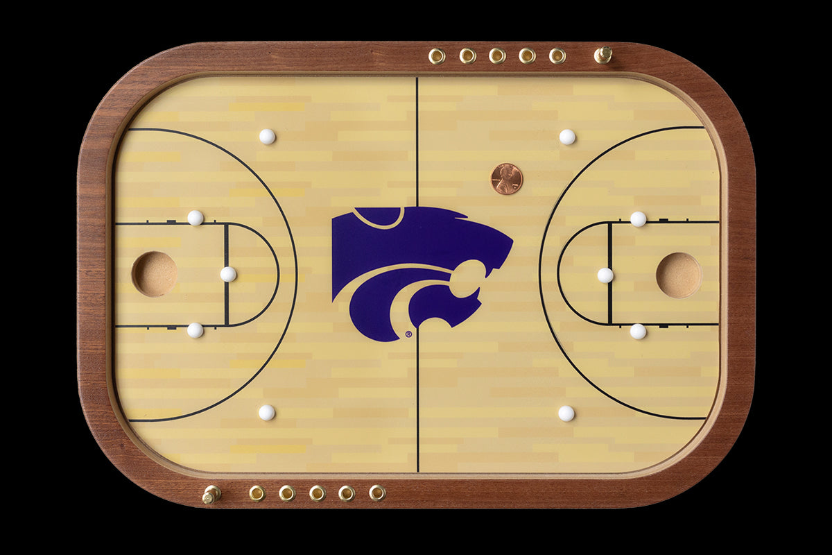 Includes colorful basketball board game, two metal pegs, a penny, and directions.