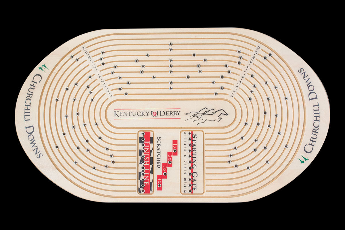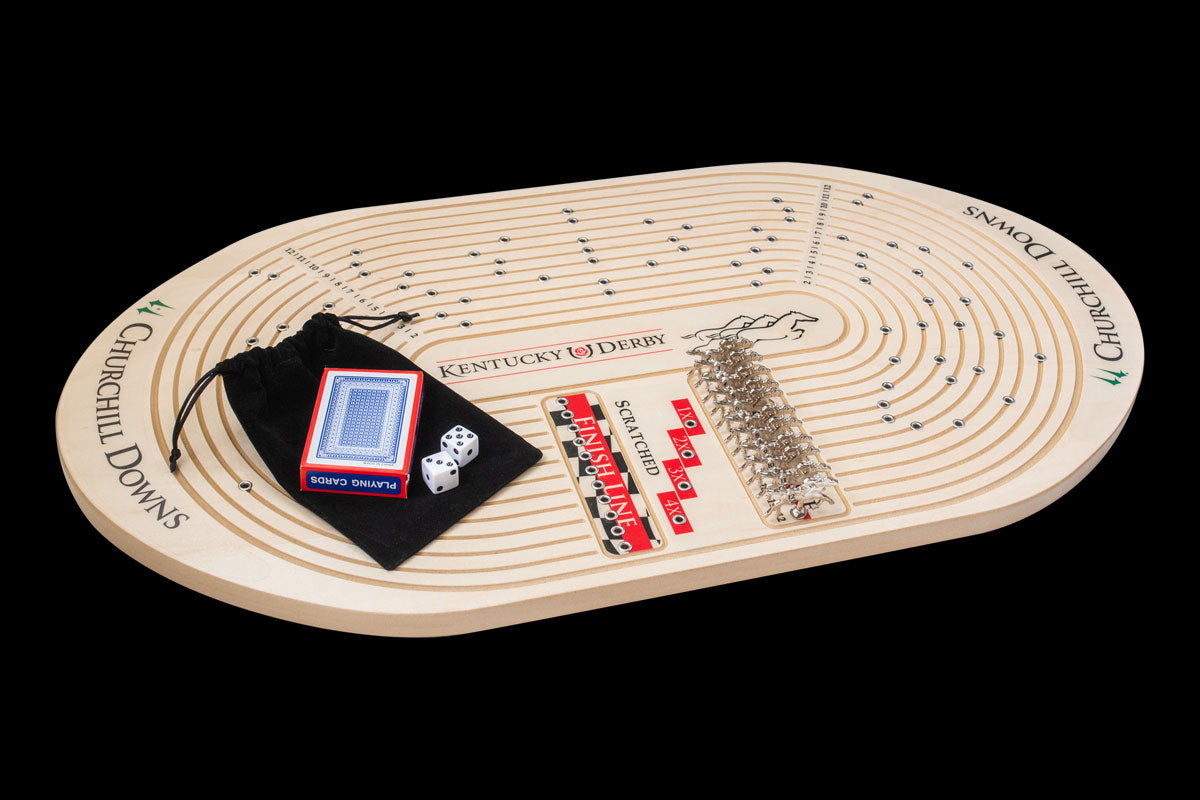Across the Board is thrilled to introduce the official licensed board game - the Kentucky Derby horseracing game! The original Across the Board horseracing game has been redesigned to replicate the Greatest Two Minutes in Sports! A beautifully handcrafted oval race track brings the excitement of Churchill Downs to your living room! To play the Kentucky Derby board game, line up the horses at the starting gate, deal the cards and begin rolling the dice to scratch horses and start building your “pot”. The remaining horses race to the finish line. Hold the winning horse’s card and you win!