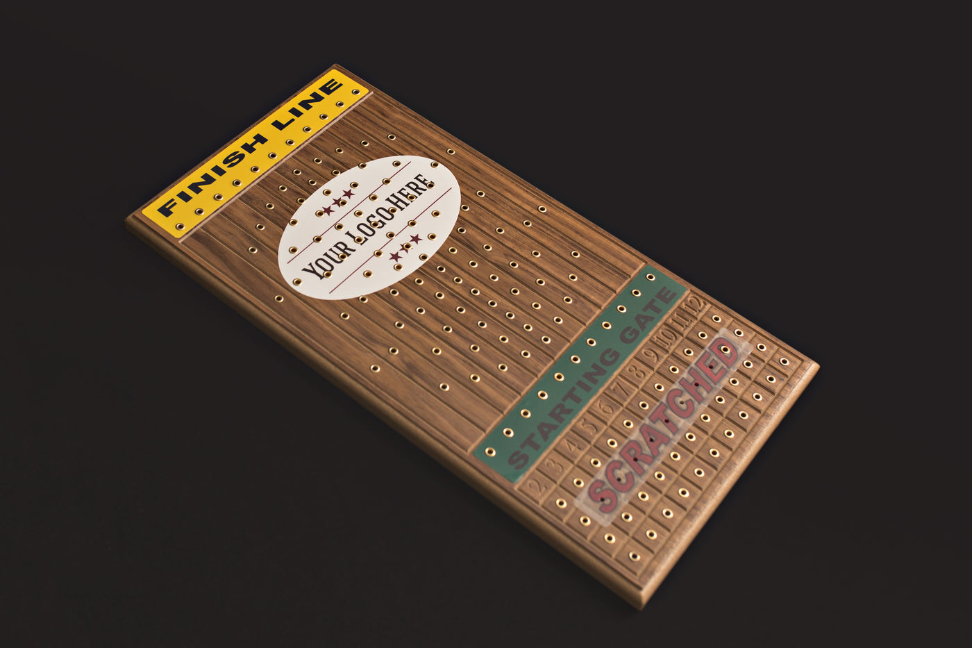 Line up the horses at the starting gate, deal the cards and begin rolling the dice to scratch horses and start building your “pot”. The remaining horses race to the finish line. Hold the winning horse’s card and you win! These are the highest quality handcrafted horseracing board games available.