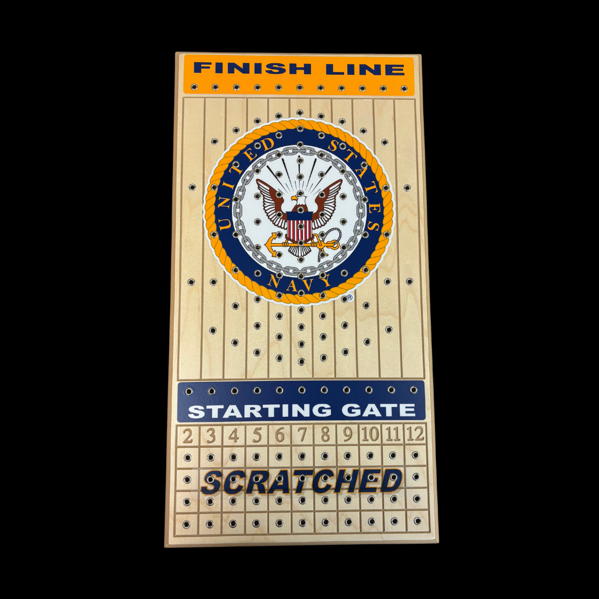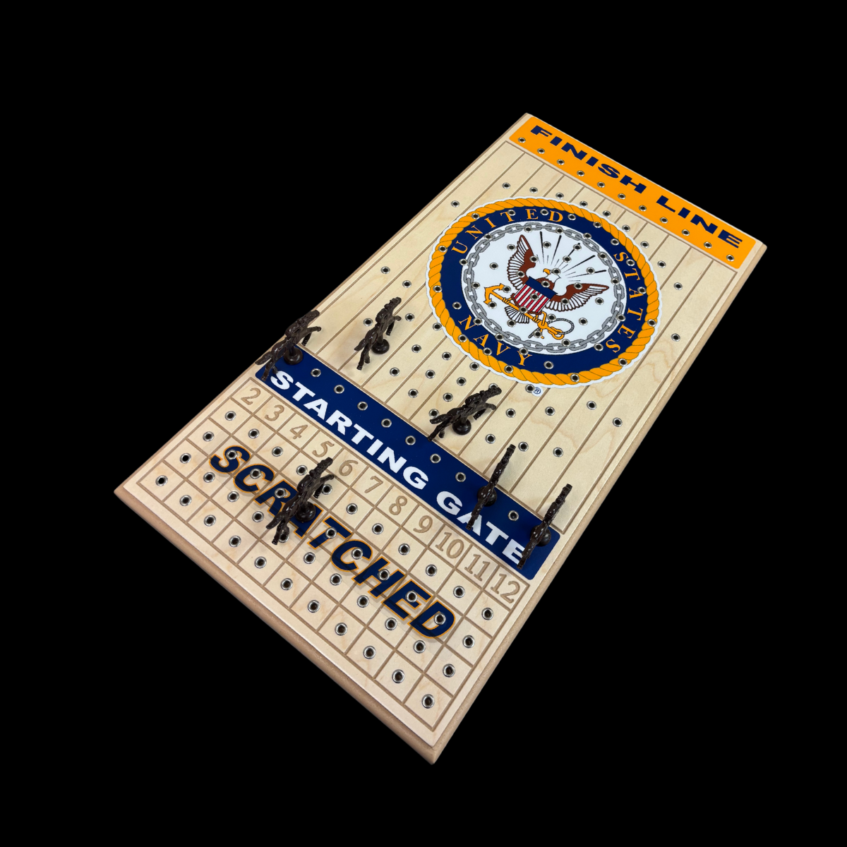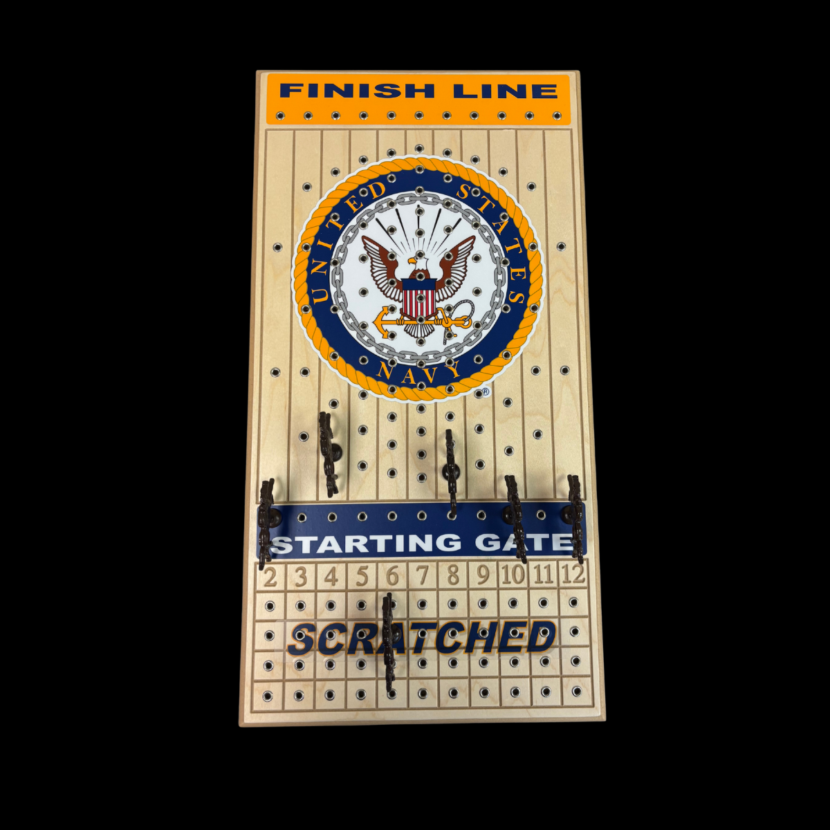 Line up the horses at the starting gate, deal the cards and begin rolling the dice to scratch horses and start building your “pot”. The remaining horses race to the finish line. Hold the winning horse’s card and you win! These are the highest quality handcrafted horseracing board games available.