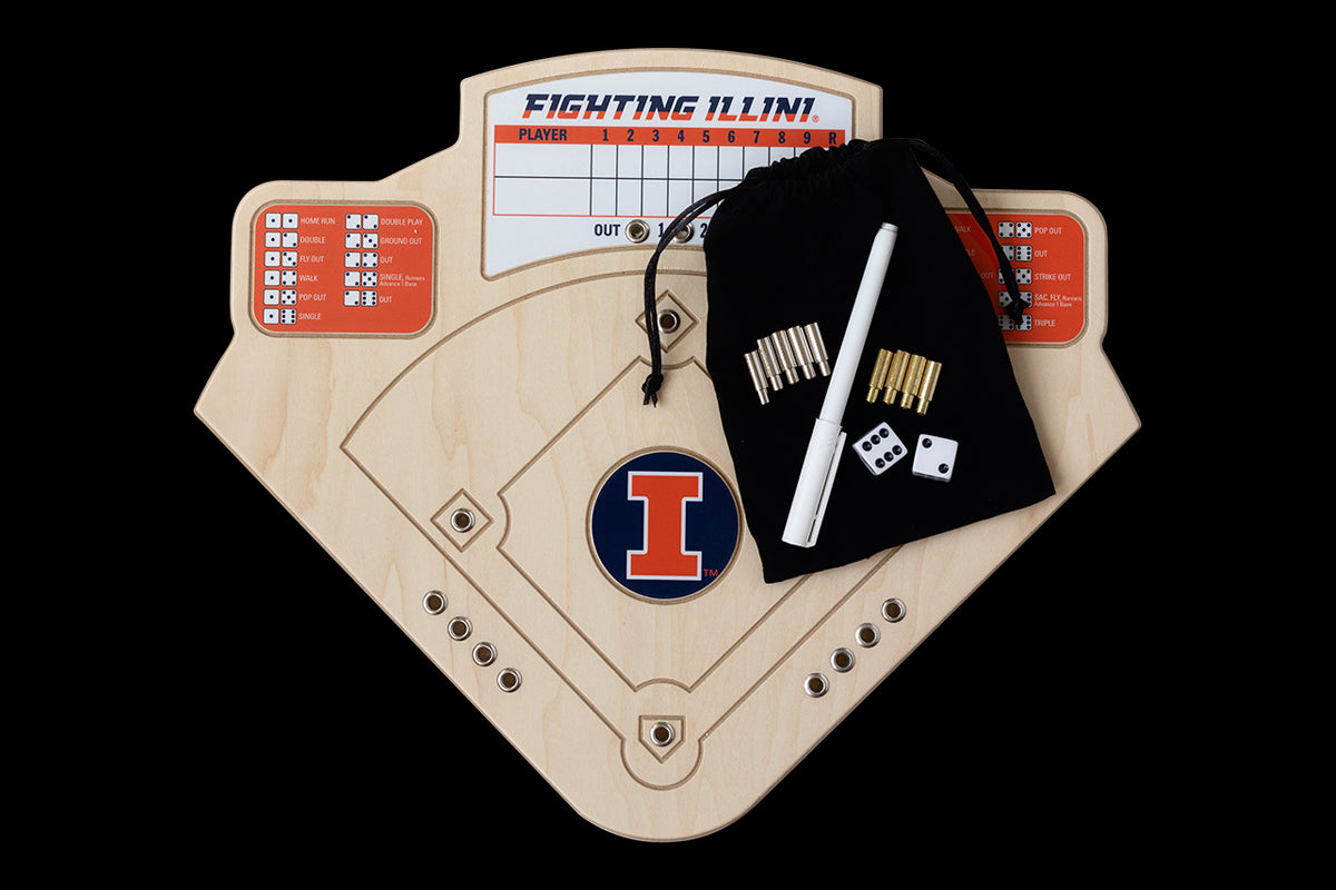Hit a homerun with our handcrafted baseball game! Play ball! Move the first batter to home plate and roll the dice. Use the dice combination to determine the outcome of the at-bat and move accordingly. The dry erase scoreboard allows for quick and easy changes to team names and scores. This game is crafted from high quality materials.